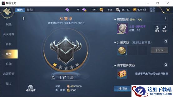 而玩家主要通过每周三、周四的商会联赛,获得威望与星魂,来晋升或突破自己的勋章,甚至获得更高级的勋章,潜力非常高。