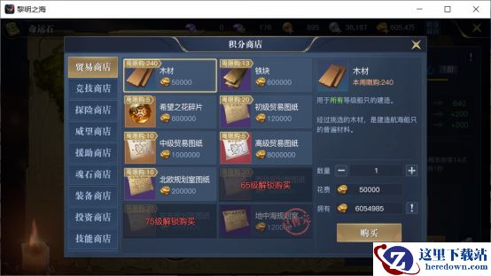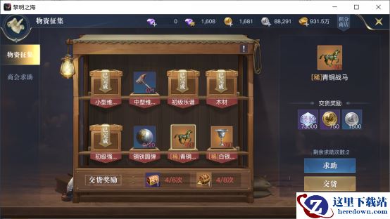希望之花(黄),主要途径为:贸易商店与物资征集。贸易商店中每周限购五个,每个60万贸易币,非常优先兑换。而物资征集是商会玩法,每天上交一定件数后获得宝箱的概率获得希望之花,其中固定获得的魂石、贡献与造船的铁块也非常重要。