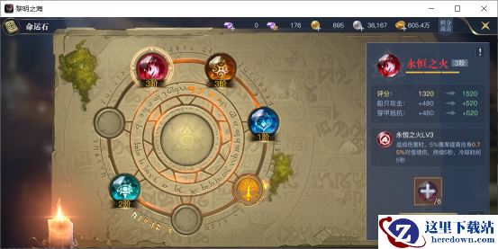 命运石,其槽位的解锁与玩家的主线进度有关,战力加成的属性与技能效果也相当实用:最初获得永恒之火(红),主加成船只攻击与防御,并概率提升自身增伤效果;希望之花(黄),加成船只的耐久与防御,进战斗状态,每隔10秒增加自身防御力(上限五层)等等。