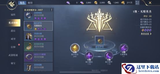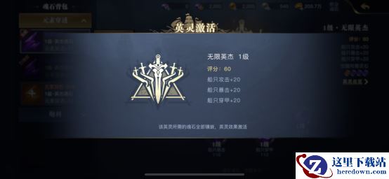 当我们一件装备镶嵌满四枚魂石后,还可以激活英灵觉醒。这个就需要我们按照右侧魂石品级标识来镶嵌,比如觉醒无限英杰,需要一个史诗和三个卓越的魂石,即可解锁无限英杰1级,增加额外的攻击、暴击和穿甲属性,提升全部魂石等级,可以提升英灵等级,进一步提高额外属性加成。另外,使用不到的魂灵可以进行熔炼获取魂石碎片,以便用来购买所需要的魂石。