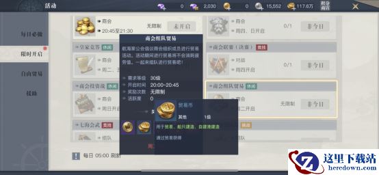 接下来是分支舰队,这里可以持续获取贸易币收益,是我们前期一定要创建的玩法。最后是商会组队贸易和商会投资战,这两个活动在商会活动的限时开启里,开启时间分别是周二和周日,小伙伴们可别错过时间,否则贸易币不一定够中后期消耗的。