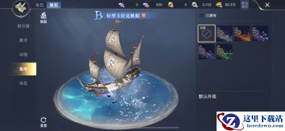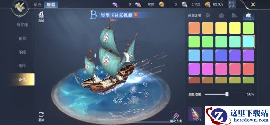 至于拖尾可以选择玩套路,比如似水年华,在船尾显露绿色光芒,给人一种不断治疗的错觉。在游戏的对战里,万一敌人不知道这个是拖尾,来对你进行针对,可就上当了。另外还有天谕流星、炼狱之炎等,非常霸气的拖尾可以进行选择。最后来说说舰船染色,可以针对舰船不同的部位进行染色,比如船帆,众多颜色、颜色的浓度都可以由自己选择,可调整性极高。