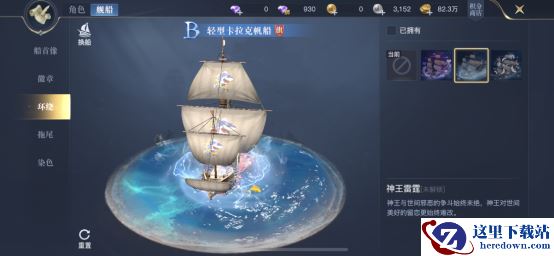 舰船的装饰品也是一绝,游戏里从船首到船尾,哪怕是舰船整体的配色,都可以进行修改。比如船首像,可以搭配独角兽、人鱼少女像等装饰;船帆上可以添加各类徽章,有些类似于海贼的标志,谁能拒绝一个萌萌的鲨鱼船帆呢?船体周围的环绕可以选神王雷霆,四周雷电环绕,先不说战斗力如何,看着就很有压迫感。