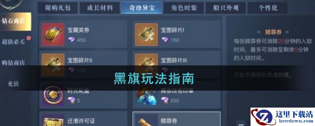 5.黑旗冒险家被巡航舰队或是其他冒险家击败后,将被遣送至天堂岛监禁,可以通过缴纳赎罪券来减免刑期。