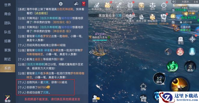 2.在黑旗模式下,击败其他冒险家及各国商船可以劫掠货物。可以前往黑旗岛出售掠夺货物,获得高额利润。