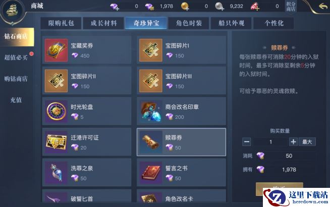 我们可以通过缴纳赎罪券来减免监禁时间,赎罪券可以在钻石商店中花费50绑钻购买,每张赎罪券可以消除20分钟的入狱时间,最多可消除至剩余5分钟。