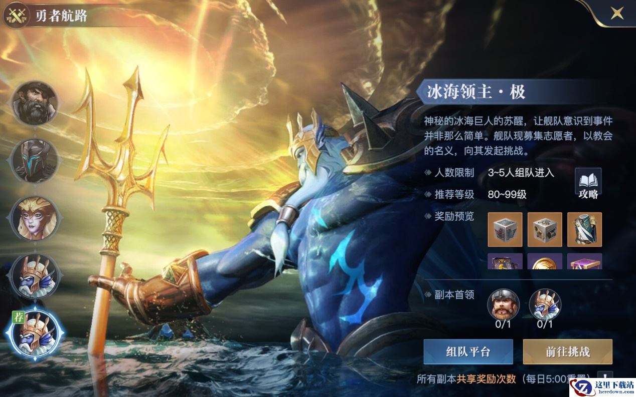 不同于其余三个固定的每日组队玩法副本,勇者航路中有着更多的副本选择可供玩家考虑,副本等级越高,难度越大,挑战成功后的奖励也越丰富。