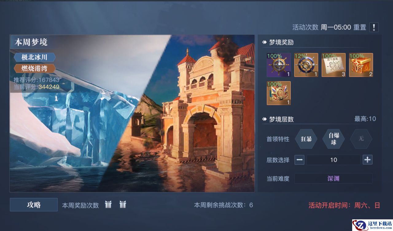 神秘梦境石每周六、周日限时开启的组队秘境挑战活动。每周一五点将随机当周的梦境和首领特性,每周六、日可以参与挑战梦境。玩家每周有6次挑战次数和2次奖励次数,通关后扣除奖励次数并获得奖励,全部挑战次数耗尽后将无法再次进入副本。