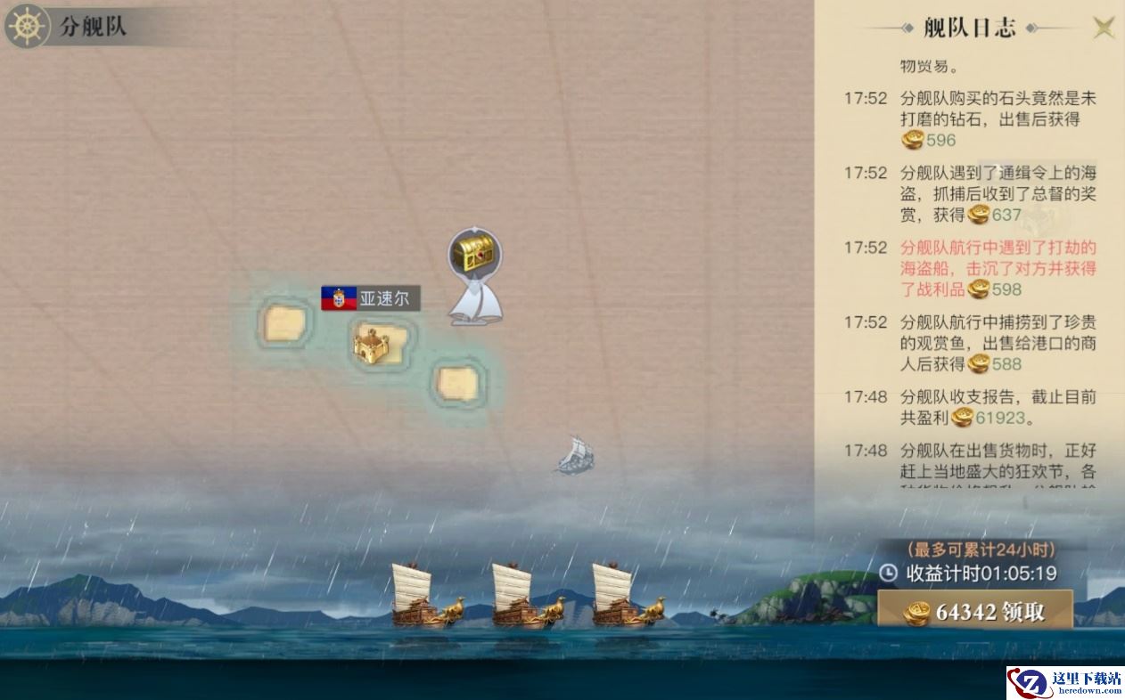 启航后的分舰队处于自动贸易状态,每半小时汇报一次收益结算,最多可积累24小时的挂机收益,超过24小时后的挂机收益将不再计入,建议肝帝玩家玩家每天及时领取贸易,刷新分舰队出海。