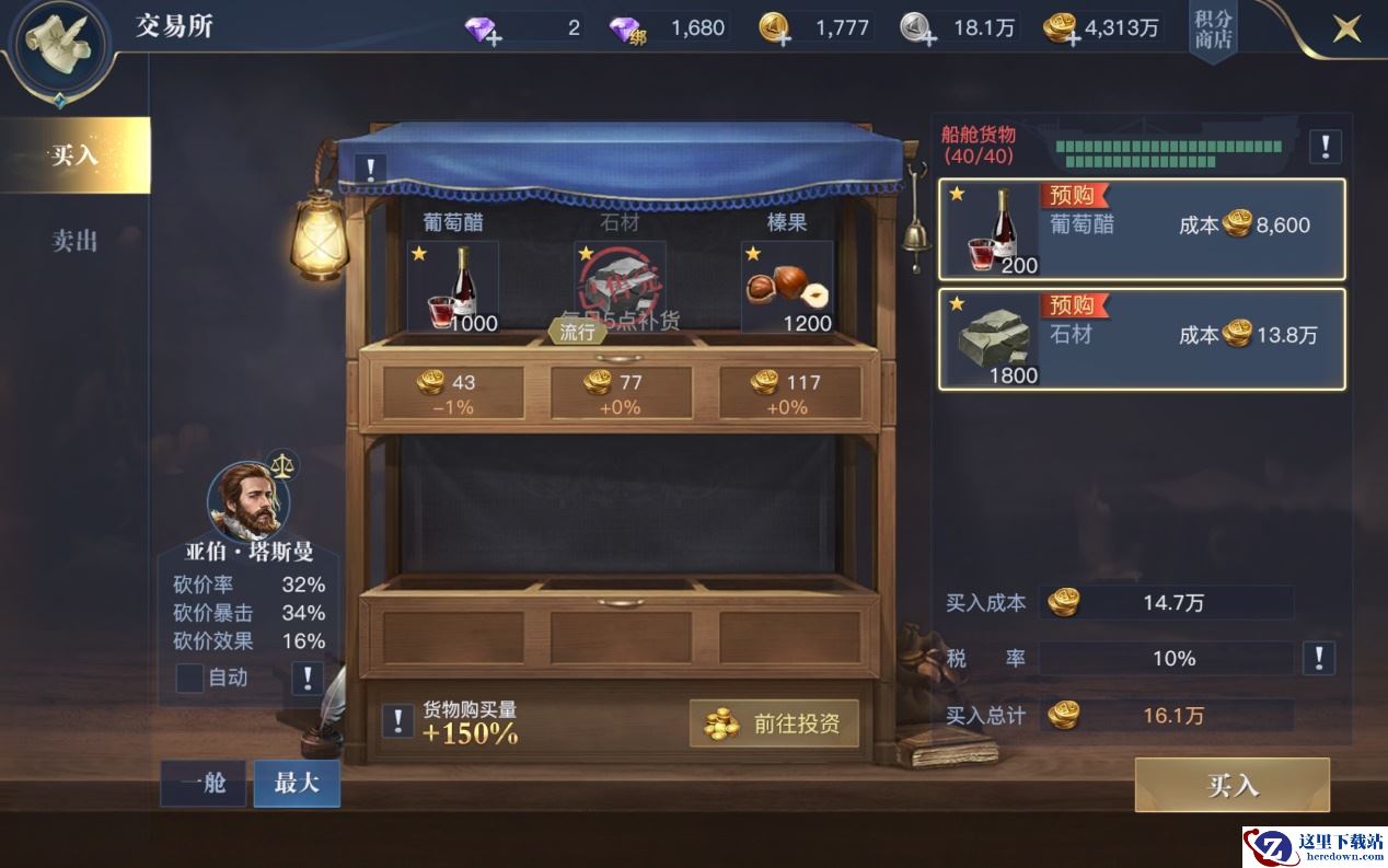 我们每天都可以进行多次海上贸易并获得大量贸易币。其中出售流行商品能获得极高利润,且不增加疲劳度;普通商品会根据商品等级增加不同的疲劳度。疲劳度到达上限后,我们将无法出售商品。建议肝帝玩家每日优先进行流行商品贸易,随后再进行普通商品贸易,尽量将疲劳值用至上限。