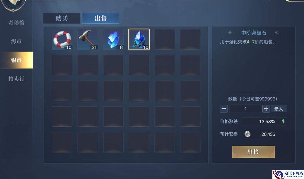 《黎明之海》中共有三个交易行,分别为奇珍馆、海市与银市。只有非绑定的物品才可以在奇珍馆与海市中上架并进行售卖,银市则无所限制。