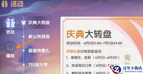 3、最好到活动页面之后,直接点击下方的福利选项。