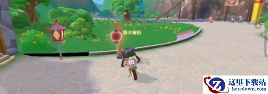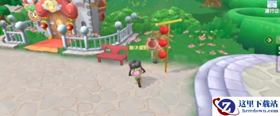 1、来到爱心教堂附近,座椅边上有一个兔子灯笼。