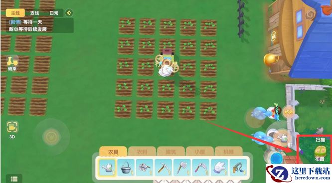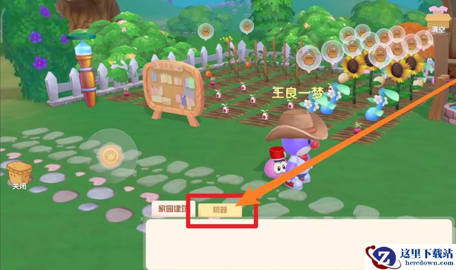 后花园放置机器方法:摆放布置按钮—机器—耕地—箭头