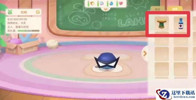 4、在道具栏找到食物,魔法弹簧可以让拉姆恢复心情,万能药水恢复其饥饿值、口渴值、清洁值和心情值。点击即可喂食拉姆。