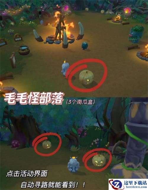 毛毛怪部落有3个。点击活动图标自动寻路即可