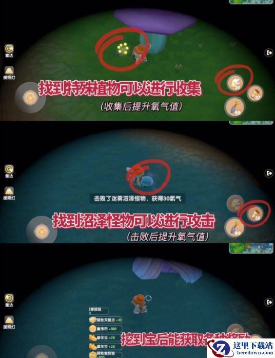 2.左上角氧气值是公用的!所以如果附近有小怪物或特殊植物~记得进行收取!提升氧气值。