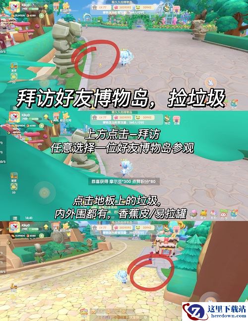 2、上方点击一拜访—任意选择一位好友博物岛进行参观—点击地板上的垃圾。