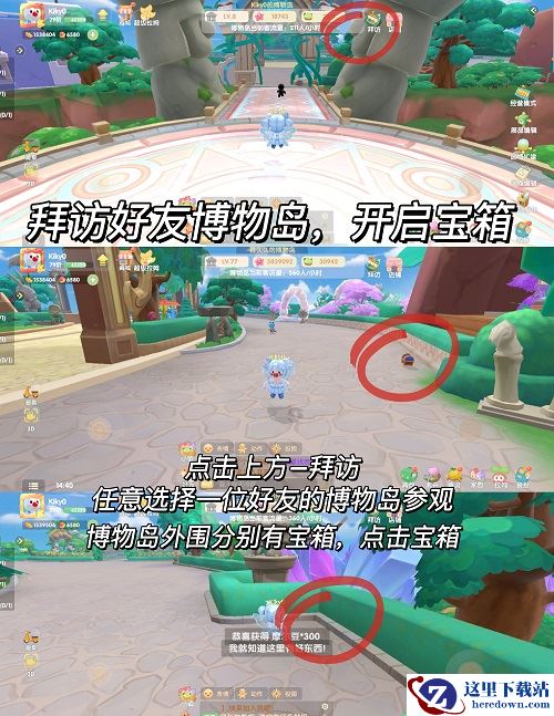 2、点击上方-拜访—任意选择一位好友的博物岛参观—点击外围的宝箱。