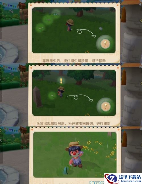 2、看到昆虫后来到昆虫旁边,昆虫头顶出现感叹号,右手边会出现捕捉键,点击捕捉键,站立不动即可。