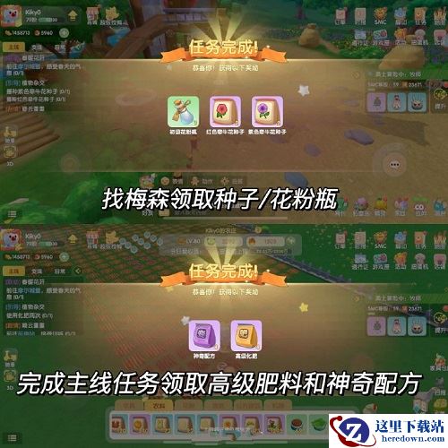 1、首先先去做主线任务,找梅森领取种子/花粉瓶,一步步完成主线任务领取高级肥料/神奇配方。
