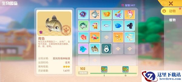 1、青鱼在阳光牧场神秘湖钓到,稀有程度为3星,大家可以使用渔网来钓取,几率更高。