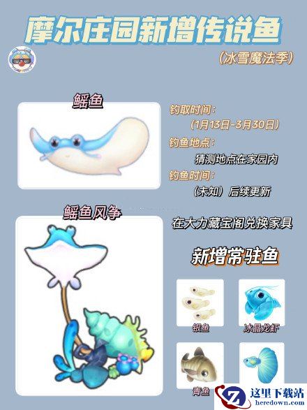 4、鳐鱼为季节限定传说鱼可以在大力藏宝阁兑换家具鳐鱼风筝。