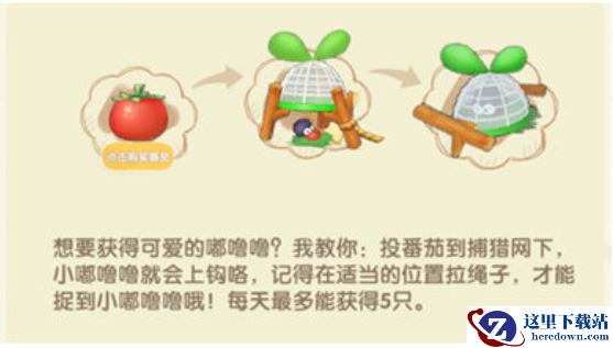 2、然后在适当的位置需要拉动绳子,这样就可以成功捕捉小嘟噜噜。(每天最多5只)