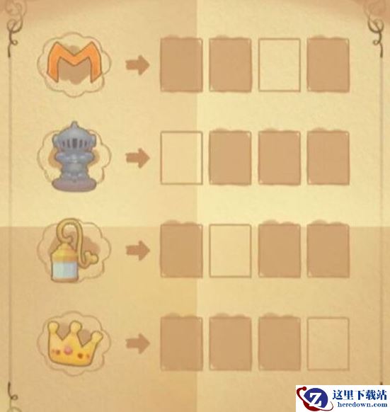 3、最后,我们进入城堡里面,可以看到一个密码箱,输入4463(物品的数量和空格就是顺序)打开。