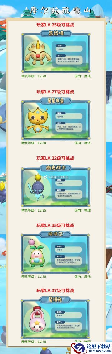 ④本图的先后顺序是根据玩家达到规定等级才可挑战相对应的精灵排列