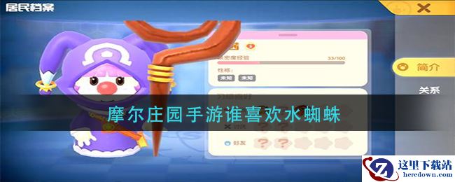 在游戏内,喜欢水蜘蛛的NPC只有占卜师茜茜。除了水蜘蛛外,茜茜还喜欢樱花蛇和麻辣小龙虾料理,赠送以上礼物均可以获得更多好感度;但注意不要给茜茜送带鱼和苹果。