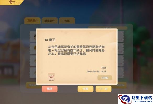 1、玩家在做到这个任务的时候,玩家会收到一个邮件,可以在邮件中领取任务道具“冒险笔记”;