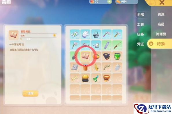 3、因此玩家需要打开背包,在特殊道具那一栏中就可以找到这个“冒险笔记”;