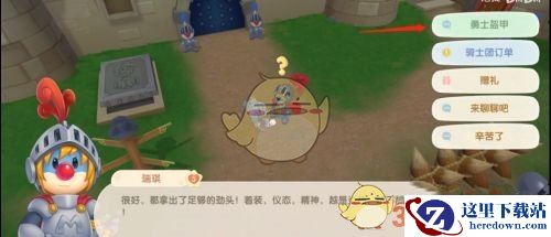 大家有了这个任务之后,就可以直接前往前哨站,找到瑞琪团长,点击进行对话。可以看到对话选项里,第一个便是勇士铠甲了,点击。