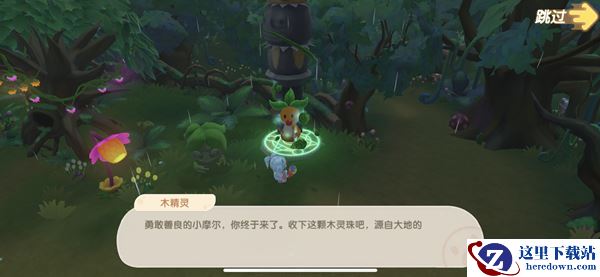 3、靠近青蛙柱子后会突然出现木精灵,和木精灵对话。