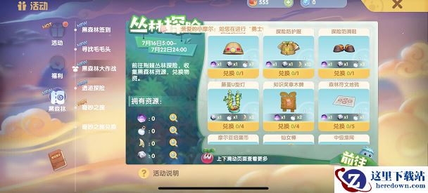 目前在游戏中黑色产物的作用,就是可以在“活动面板”-“黑森林大作战”活动中,来兑换各种稀有的道具,比如探险套装、扭蛋币、渔网、家具装饰等。