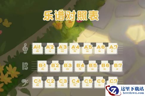 乐谱符号的含义,琴键按照音高划分为A、B、C三组,数字1至7对应Do到Si,按键编号对应表如上。
