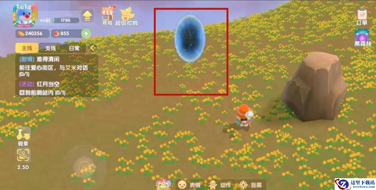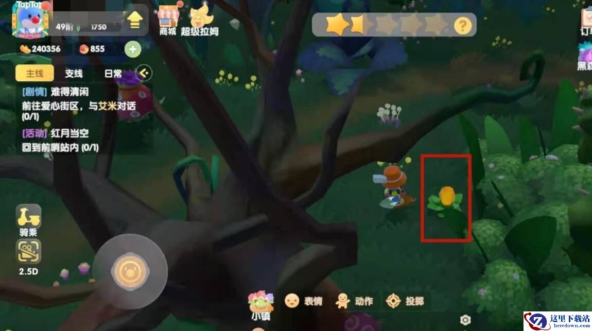 3、进入传送门,到达荆棘丛林地图,然后点击下方的黄色果实;