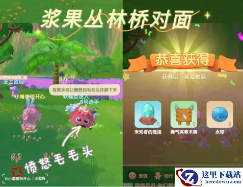 暴怒的毛毛头:需要用水球3投掷(它生气的时候不停的动弹,投掷到它正常站着就可以,能对话就行!)