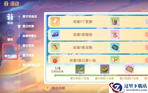 2.在左侧切换到【奇妙之旅】活动进入参与活动(更新后在活动左侧切换到【夏日季】);