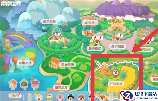 2、然后点击在地图中前往开心农场和阳光牧场中间的河道。