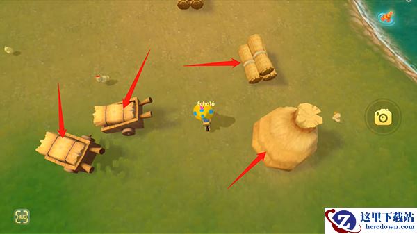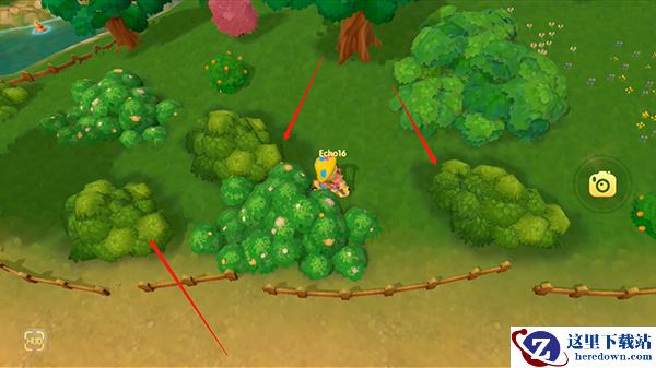 1、目前游戏中可以交互的草垛和草丛多有,可以在浆果丛林、爱心街区、阳光牧场、阳光沙滩等位置,找到绿色的草丛,靠近交互,如下图;