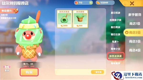 3.在切换到【商店2级】-【抹茶冰淇淋】,点击一件穿戴,再点击【购买】花费摩尔豆购买即可。