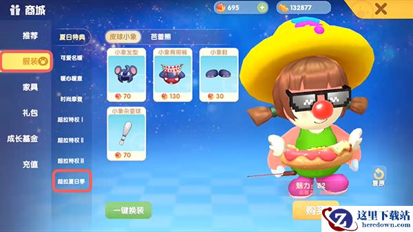 2.再点击【商城】进入,切换到【服装】,再点击【超拉夏日季】;