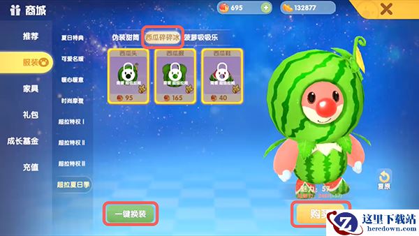 3.在上方切换到【西瓜碎碎冰】,点击一键换装,点击【购买】花费金豆购买即可。