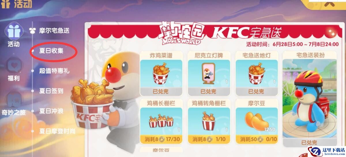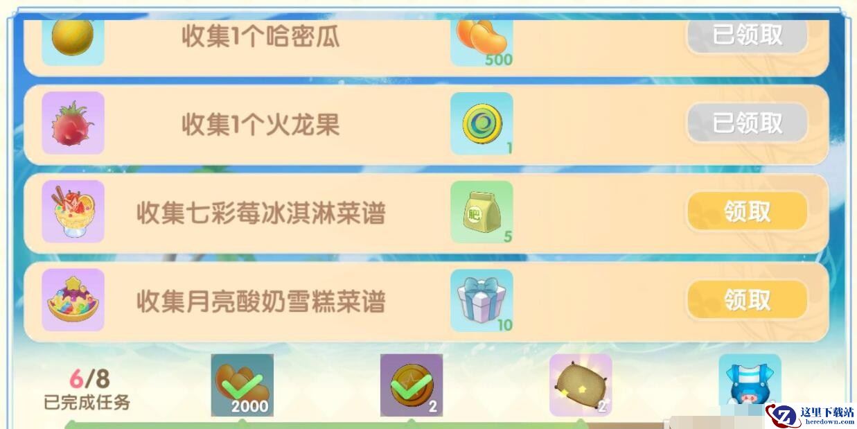 在夏日版本中开启了全新的收集活动,玩家们通过收集不同的农作物,鱼种和食物就可以完成任务获得奖励。想要获得憨憨小猪套装的话需要将收集任务中的全部道具收集齐,共有八个任务。