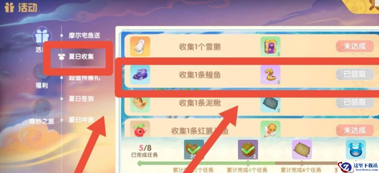 1、在活动页面,通过收集鳗鱼获得收集奖励。
