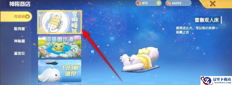 3、点击一下雪獭双人床,准备足够的雪獭后点击交换即可兑换。