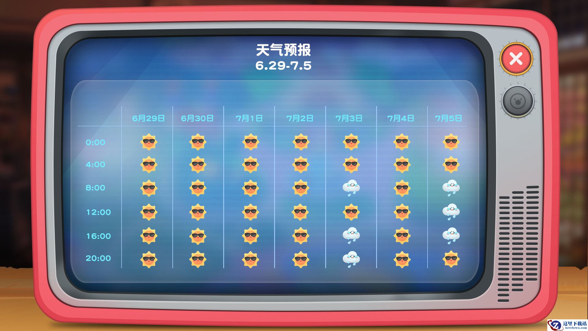 如果小摩尔们担心会忘记,具体的时间大家可以回到小屋内,查看小屋的电视机查询一下当天和明天的天气情况。