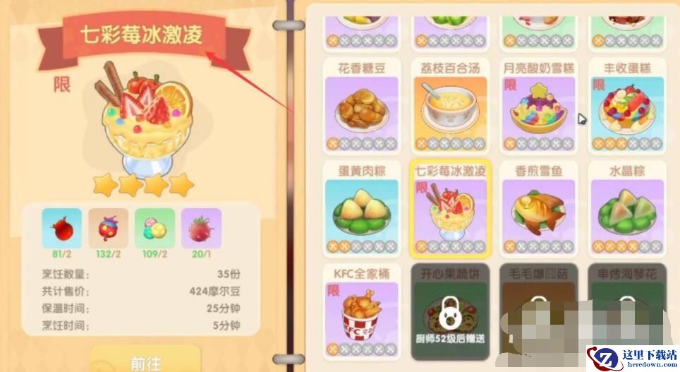 冰淇淋的菜谱很容易获得,小摩尔们打开【活动】-【奇妙之旅】-【夏日季】,等级达到5级后,就可以领取七彩草莓冰淇淋菜谱了呢!